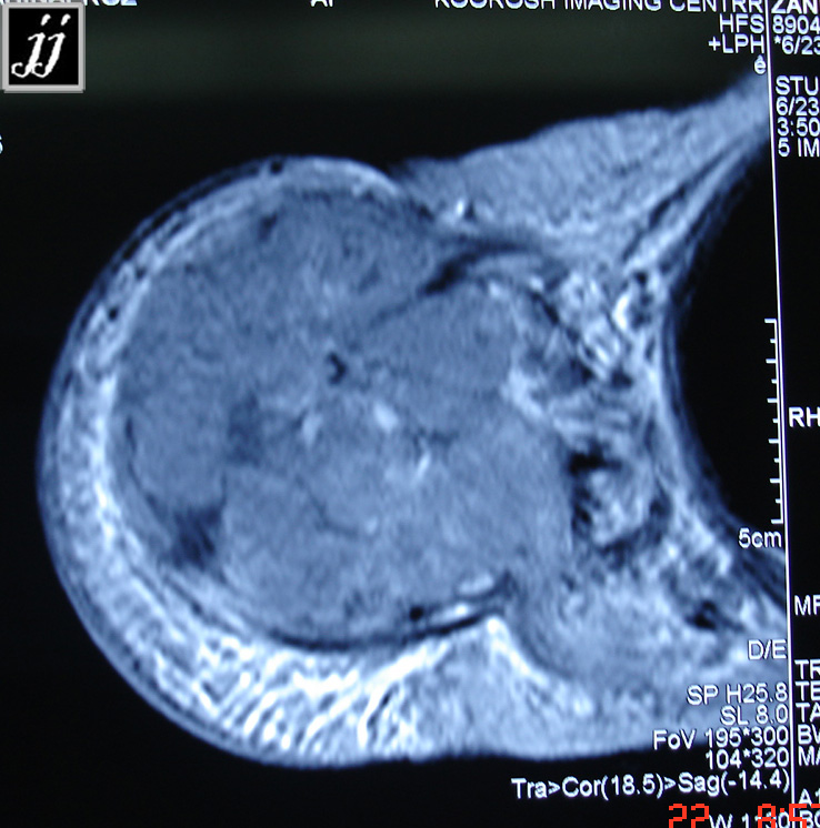 MSK – pathologic fracture of humerus, proximal humerus tumor, axial T2